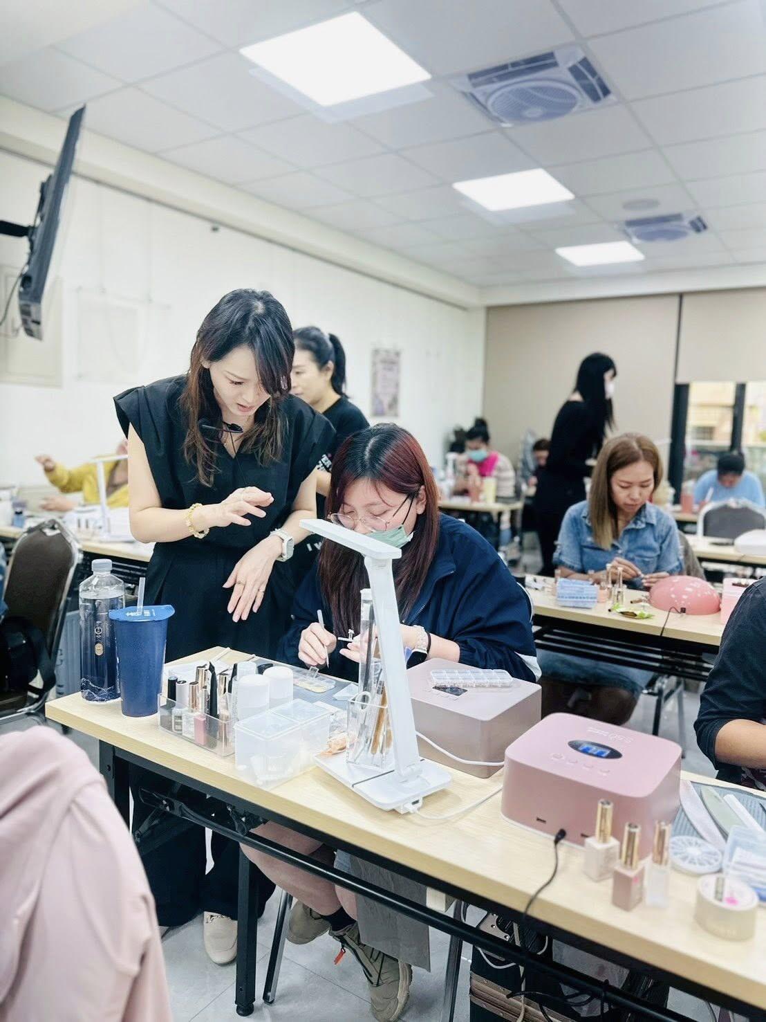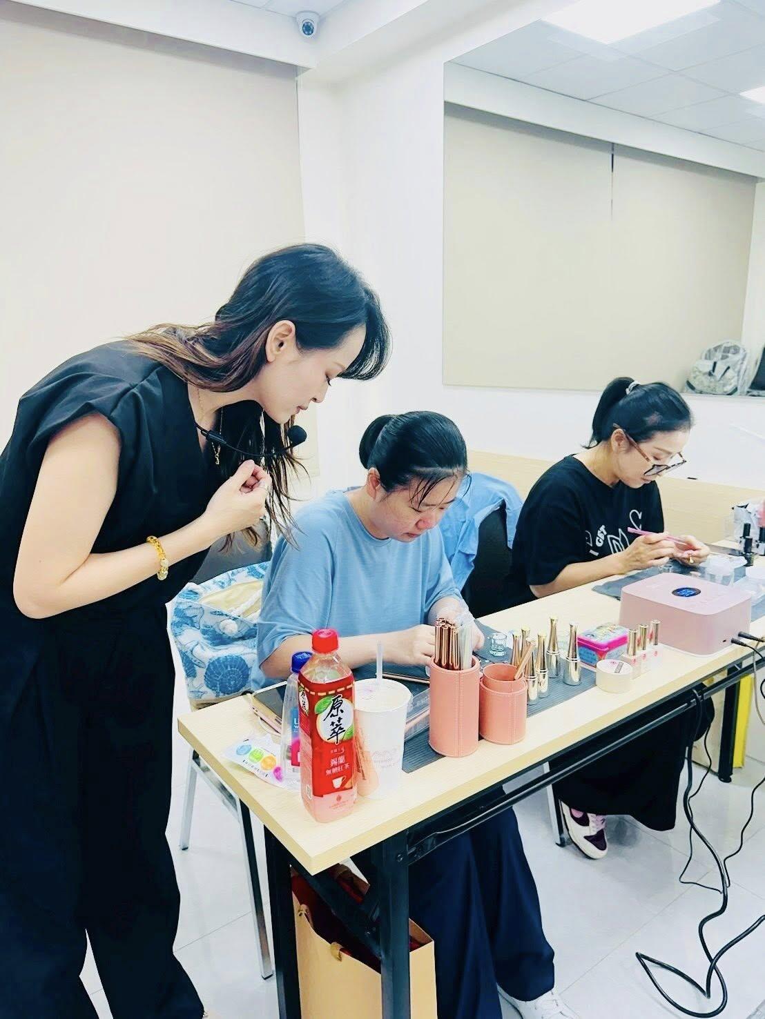 Học viên đều chăm chú lắng nghe, cô còn đến từng bàn để hướng dẫn, giải đáp thắc mắc và hỗ trợ thao tác thực hành trực tiếp.